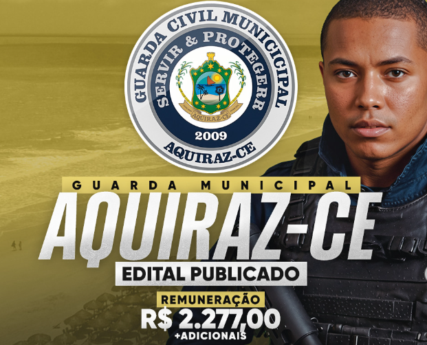 A Prefeitura de Aquiraz (CE) publicou o edital para o novo concurso da Guarda Municipal, uma grande oportunidade na Região Metropolitana de Fortaleza. O certame, organizado pela banca CONSULPAM, oferece 25 vagas imediatas mais 25 para Cadastro Reserva, exigindo Ensino Médio e sem limite de idade. A remuneração inicial é de R$ 2.277,00 (incluindo periculosidade e outros adicionais). Inscrições vão até 29/12/2025, com prova prevista para 29/03/2026.