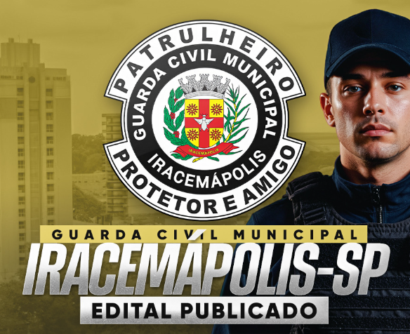 O edital da Guarda Civil Municipal de Iracemápolis (SP) foi publicado, oferecendo 1 vaga imediata + CR para candidatos com ensino médio e CNH A+B. O salário é de R$ 3.553,33 (base + VA) mais adicionais. As inscrições vão de 24 de outubro a 24 de novembro de 2025, com prova prevista para 18 de janeiro de 2026, sob a organização da banca INDEC.