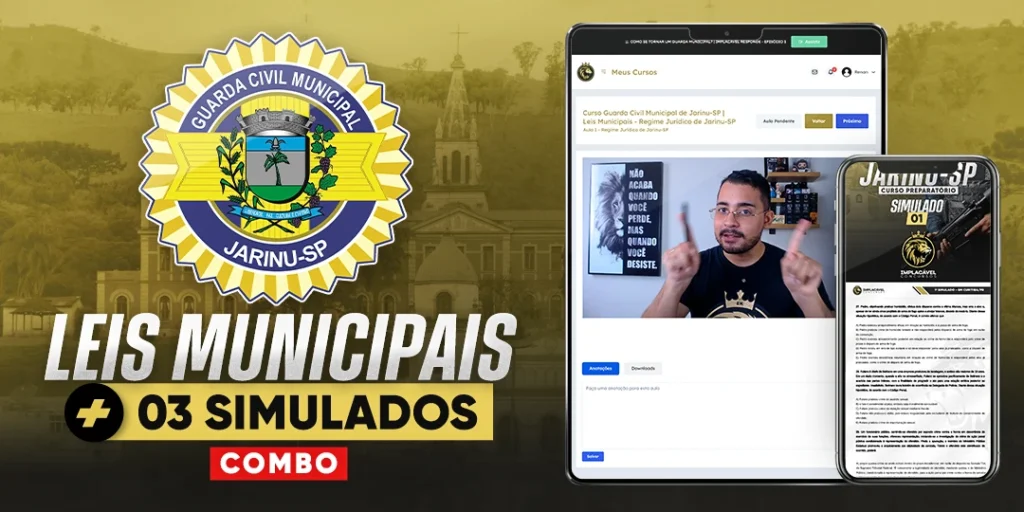 Combo Legislação Municipal + 3 Simulados – Guarda Civil Municipal de Jarinu-SP3 horas de aula|3 matérias12x deR$ 18,98Começar a estudar