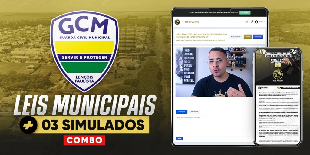 Combo Legislação Municipal + 3 Simulados – Guarda Civil Municipal de Lençóis Paulista-SP10 horas de aula|3 matérias12x deR$ 18,98Começar a estudar