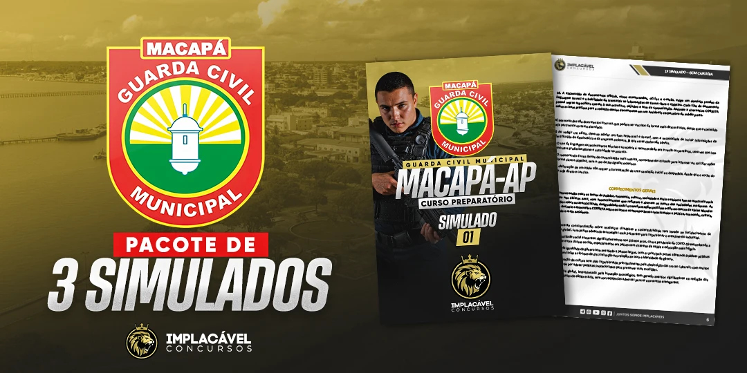 Teste seus conhecimentos e chegue preparado no dia da prova! O Combo de 3 Simulados – Guarda Civil Municipal de Macapá-AP foi criado especialmente para quem quer avaliar o desempenho real antes da prova e identificar seus pontos fortes e fracos em cada disciplina do edital.